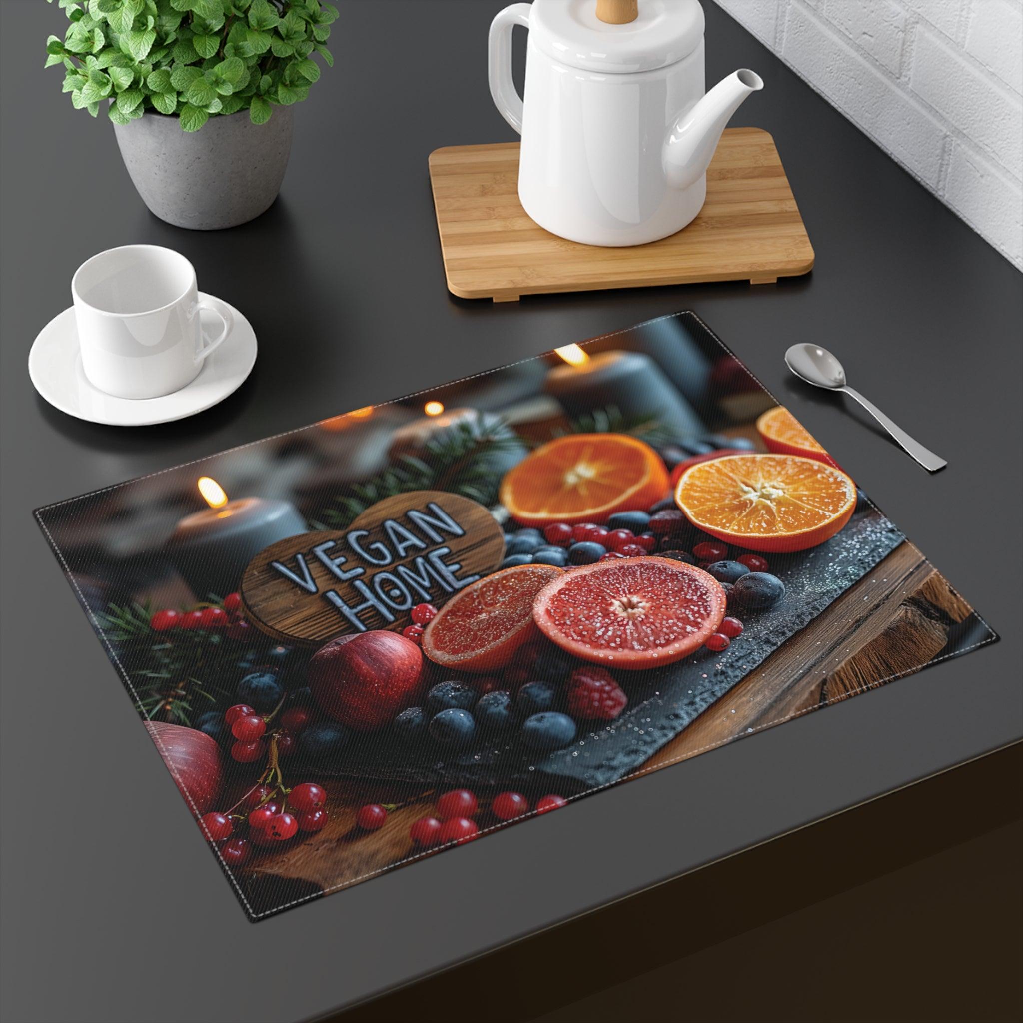 Enhance your dining experience with our vegan-themed placemats. Whether you're enjoying a plant-based feast or simply want to spread awareness, these placemats are a must-have for any conscious home. Bring more heart to your table with a reminder of the kindness that fuels your lifestyle. Made from durable 100% cotton and double-sided construction, these placemats are resilient, easy to clean, and fade-resistant.